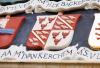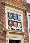 Restauratieschilder Gert van Zetten heeft het Leidse stadswapen boven de ingang van het museum weer laten glanzen: het bladgoud schittert weer in de zon. Nu zijn de wapens van de regenten op de binnenplaats aan de beurt.