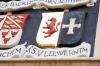 Op het baniertje onder het wapen rechtsonder staat ‘MR.S.V.LLEWÊRNTM’. Een schilderij in de Lakenhal helpt, samen met een familiewapen op een plattegrond van het St. Catharinagasthuis en een wapenkaart van de Leidse veertigraad. Het blijkt te gaan om Mr. Simon van Leeuwen. De vorige restaurator had een fout gemaakt en de letters verkeerd geïnterpreteerd. Het streepje boven de laatste E staat voor ‘EN’. In tegenstelling tot de andere heren was Mr. Simon geen regent, maar rentmeester, zoals de afkorting RNTM aangeeft.