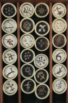According to the accompanying handwritten catalog, this cabinet originally contained eight hundred round specimens, divided into nineteen drawers. Each specimen, set in a round bone ring, contained only one type of material. The specimens were carefully arranged based on their morphology, representing various aspects of the three kingdoms of nature.